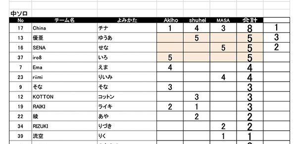 5部門までしか得点表がアップできませんので中学生ソロ部門の得点表は こちら から確認できます。