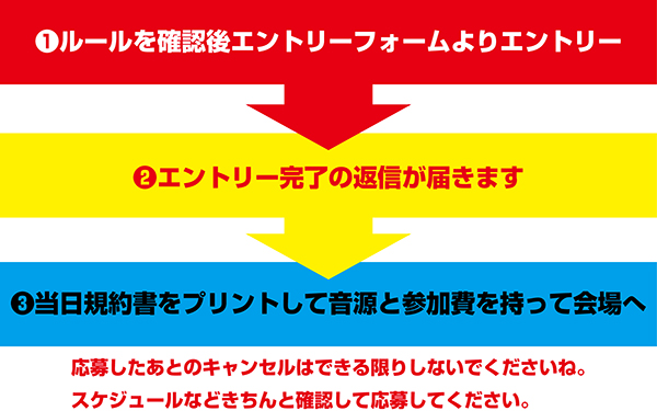 ■当日はエントリー費、規約書、音源提出後、エントリー受付完了になります。